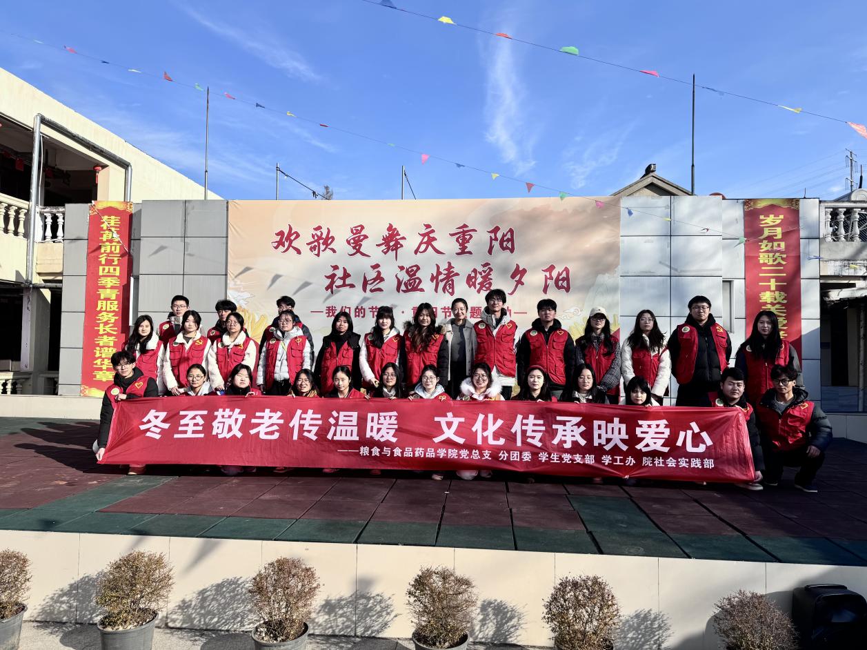 “冬至大如年,人间小团圆”。为传承中华优秀传统文化,弘扬“敬老、爱老、助老”的传统美德,2025年12月21日,粮食与食品药品学院分团委、学生党支部组织志愿者前往四季青养老院,开展“冬至敬老传温情 文化传承映爱心”主题志愿服务活动,用青春陪伴为70余名老人送上冬至佳节的温暖与关怀。