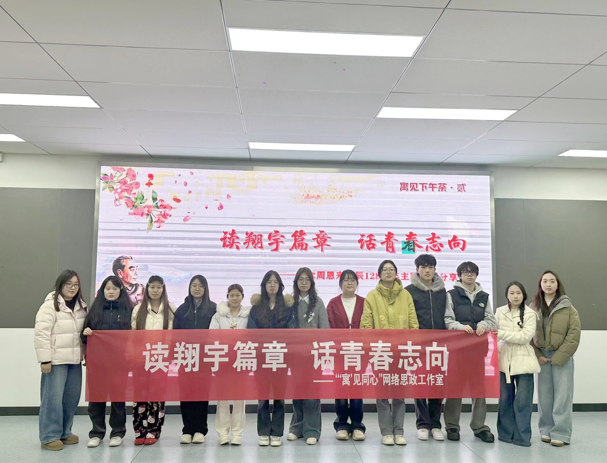 学校“‘寓’见同心”网络思政工作室举办“读翔宇篇章 话青年志向”交流分享会,60余名师生齐聚一堂,以读书分享、明信片寄语的方式,畅谈学习伟人精神的感悟,抒发青年学子的理想志向。