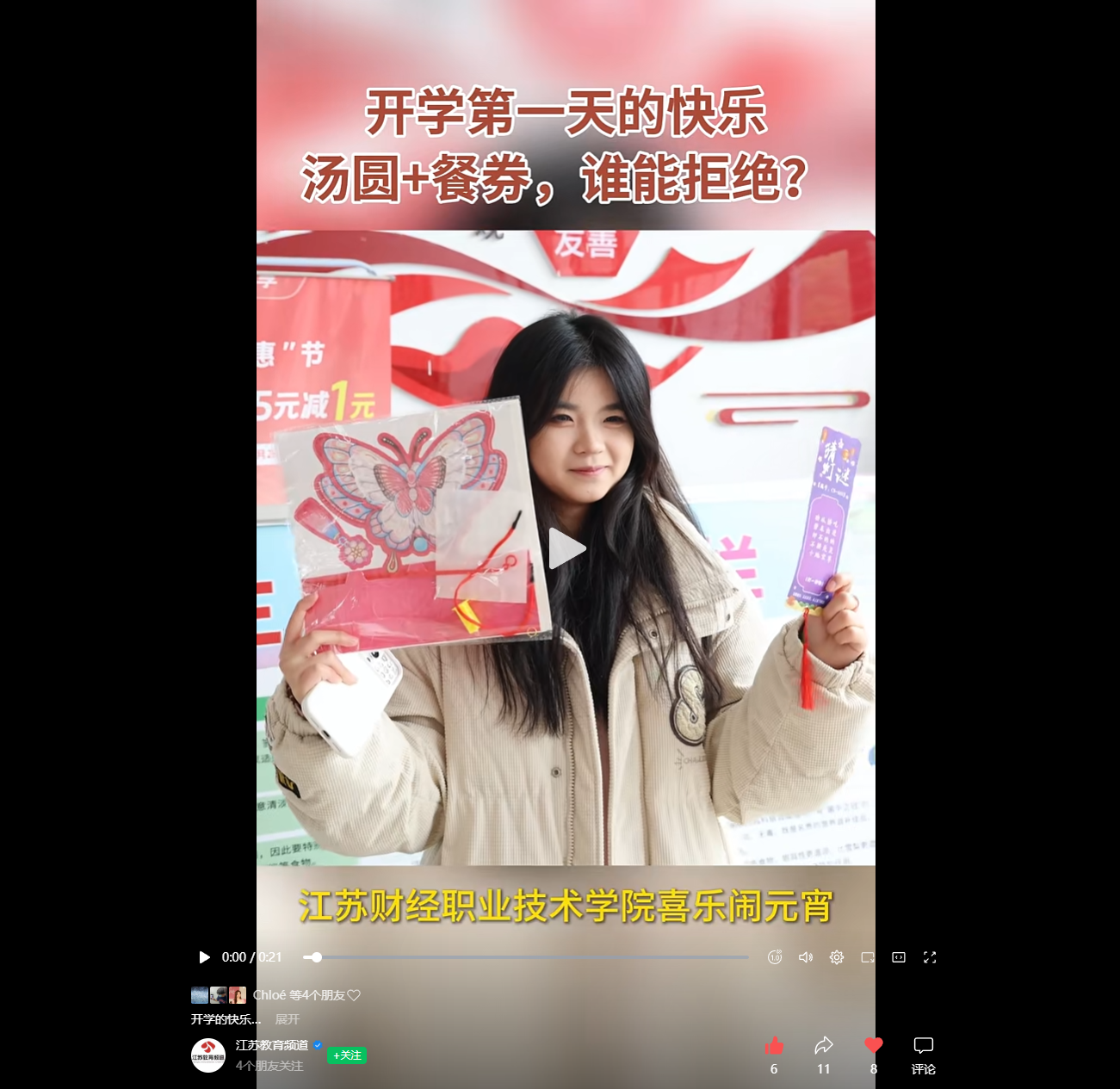 【江苏教育频道】开学第一天的快乐 汤圆+餐券,谁能拒绝?