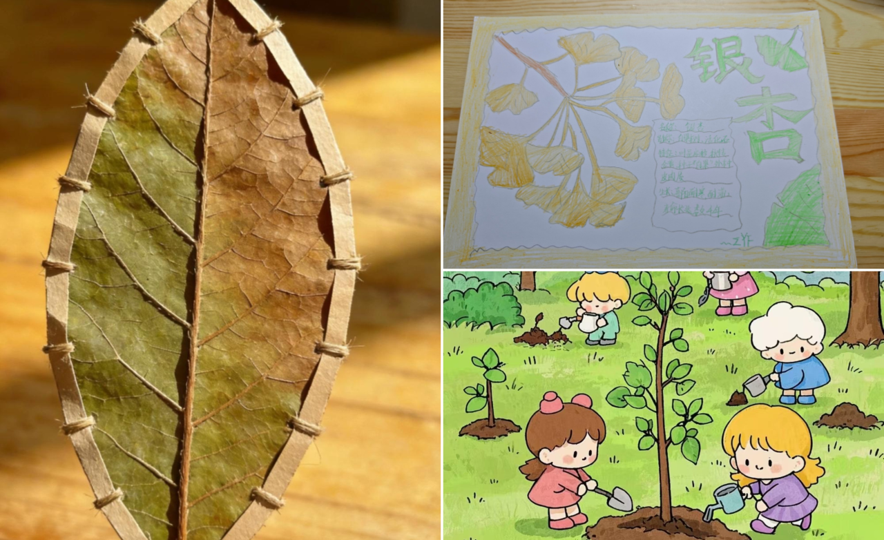 在“属于‘春’的约定”环节,活动更添温情与深意。同学们深入了解校园内各类树木的树种、树龄及背后的故事,分享自己与校园树木相伴的暖心瞬间。大家从树木默默生长、四季轮回的过程中感悟生命力量,并用文字记录与树木的美好联结,在草木生机中体会暖心润心的成长真谛。活动全程,同学们严格遵守“只拾不摘、文明环保”的原则,收集校园落叶开展创作,活动结束后还主动清理现场,用实际行动践行绿色环保理念。