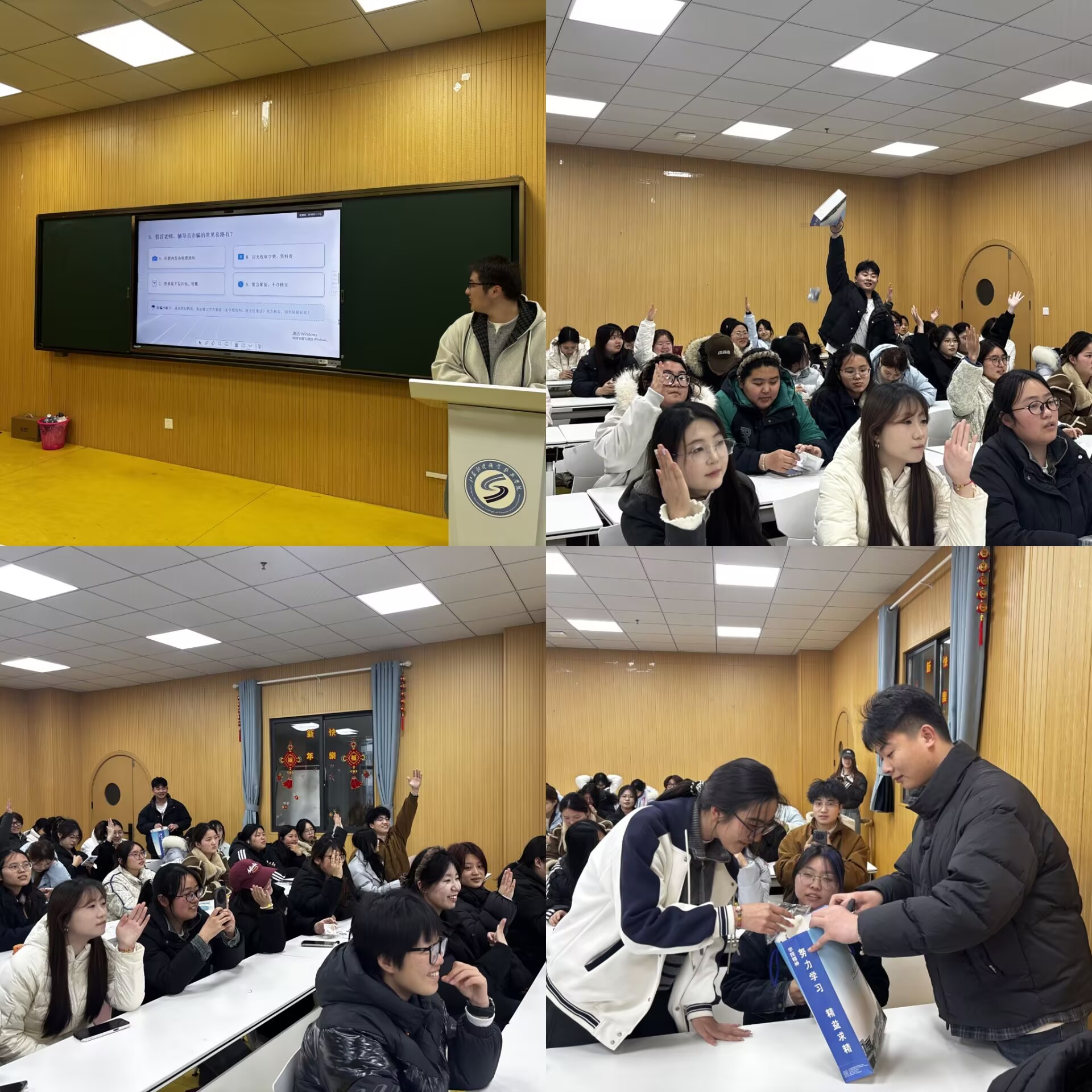 辅导员张楚结合开学以来校园内发生的真实诈骗案例进行讲解分析,让同学们直观认识到诈骗的隐蔽性与危害性。随后,开展“识诈反骗,智趣同行”反诈知识竞答活动,学院准备了手机支架、帆布袋、玩偶等丰富礼品作为奖励,让反诈宣传更具吸引力,极大调动了同学们的参与热情。