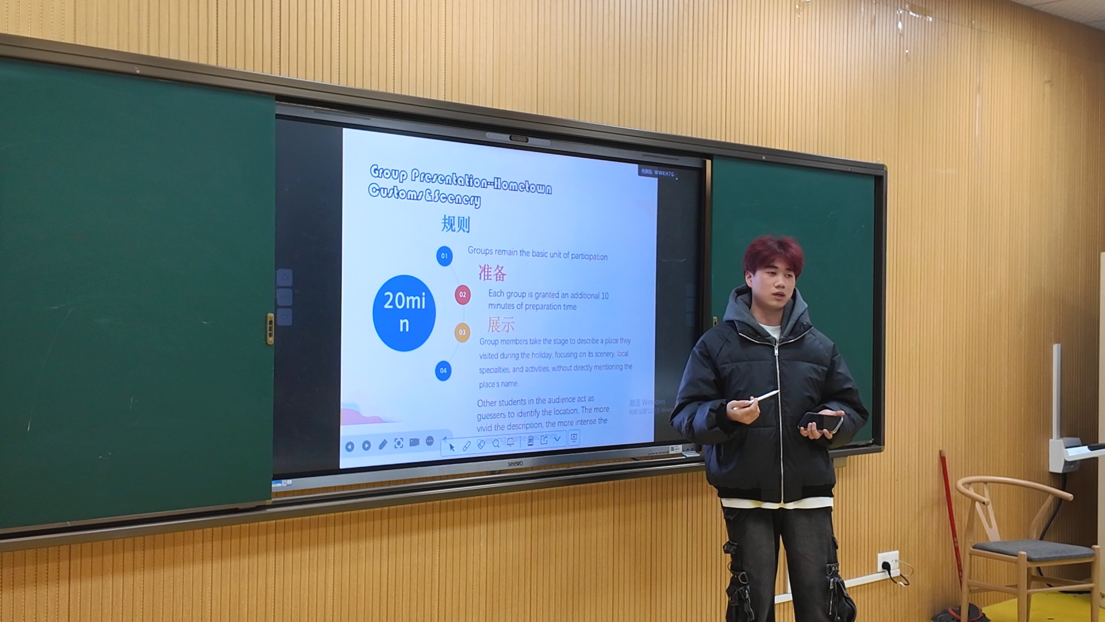 本次活动紧扣新学期伊始的时间节点,以“My Hometown & My Holiday Trip”(趣游世界,乐享家乡)为主题,旨在鼓励大家通过用外语分享寒假期间的所见所闻锻炼语言能力。活动伊始,一帧帧画面不仅展现了世界的广阔与多元,也瞬间点燃了在场所有人分享与交流的热情。紧接着进入核心环节“家乡风情画”。志愿者们联手每位学生化身“家乡推介官”,用地道的英语将中国的城市魅力娓娓道来。随后“旅行盲盒秀”则将活动推向了第一个互动高潮。来自五湖四海的学生们用外语描述一座城市,其他同学则需开动脑筋竞猜。这一环节不仅考验了参与者的英语表达能力和词汇量,在不时迸发出恍然大悟的欢呼中,让知识在轻松的氛围中传递,让默契在协作的快乐中生长。