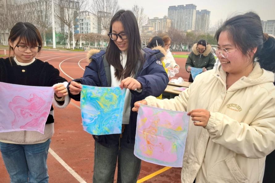 3・20谐音 “咱爱您”,传递着对心理健康关爱与守护的温暖初心。为深入推进“3.20咱爱您”心理健康活动,推动中华优秀传统文化与心理健康教育深度融合,帮助学生在艺术创作中舒缓情绪、释放压力,3月18日下午,会计学院在学校西操场成功举办了“水韵染心・水拓丝巾”非遗体验活动。学院310多名学生积极参与,在水拓画的独特魅力中感受非遗文化,点亮春日好心情。