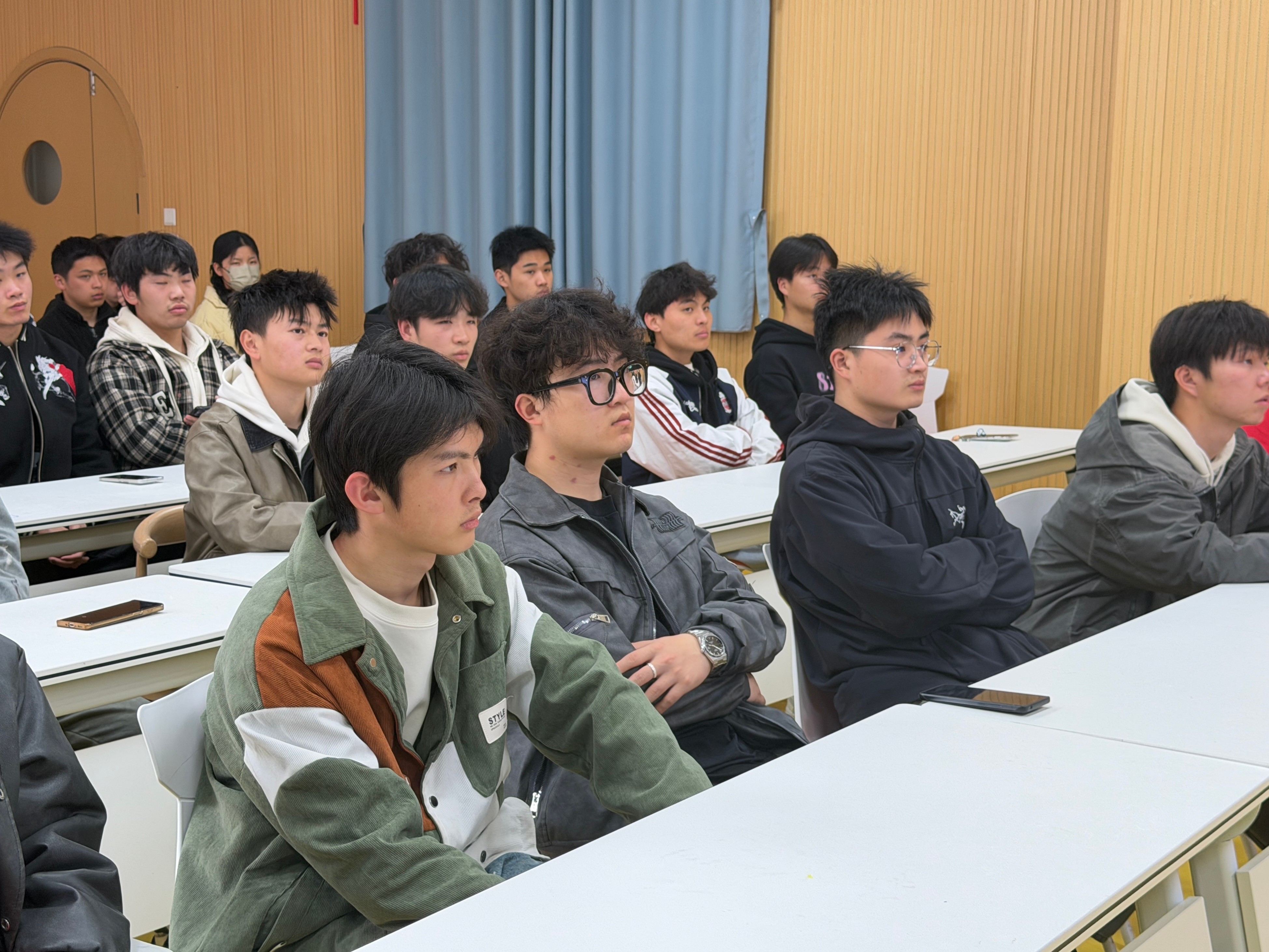 随后,贾晓晓老师结合最新征兵政策,为现场学生开展了全面细致的政策解读。他围绕大学生应征入伍的基本条件、报名流程、体检标准、政治审查要求等核心内容,用通俗易懂的语言逐一讲解,结合往届智能工程技术专业入伍学生的真实案例,生动分享了军旅生涯中的成长与收获,让同学们直观感受到携笔从戎的价值与意义。针对我院学生专业特点,他还特别分析了智能工程类专业学生在军营中的技能适配优势,为同学们规划军旅发展路径提供了针对性建议。