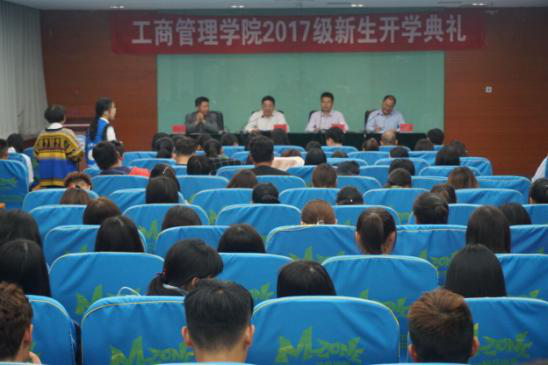 (通讯员徐晨光、司宁宁报道)10月11日下午,工商管理学院2017级新生开学典礼在图书馆的220人学术报告厅隆重举行。开学典礼由副院长刘亚主持,院党总支书记顾正祥,副院长周爱群(主持工作),副院长章尧东出席了开学典礼。出席开学典礼的还有各教研室主任,院团委书记,学院全体任课老师以及全体新生和部分老生代表。