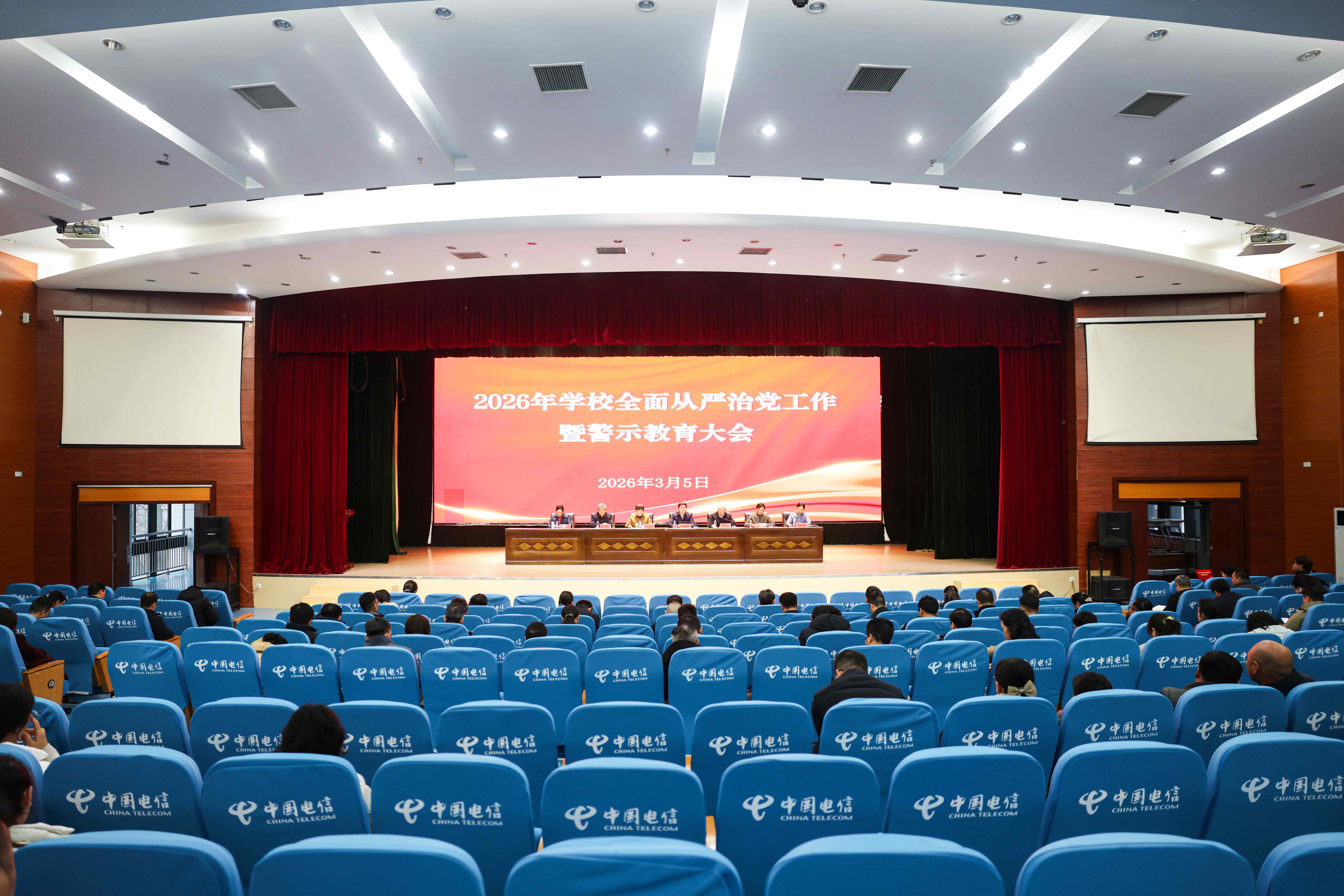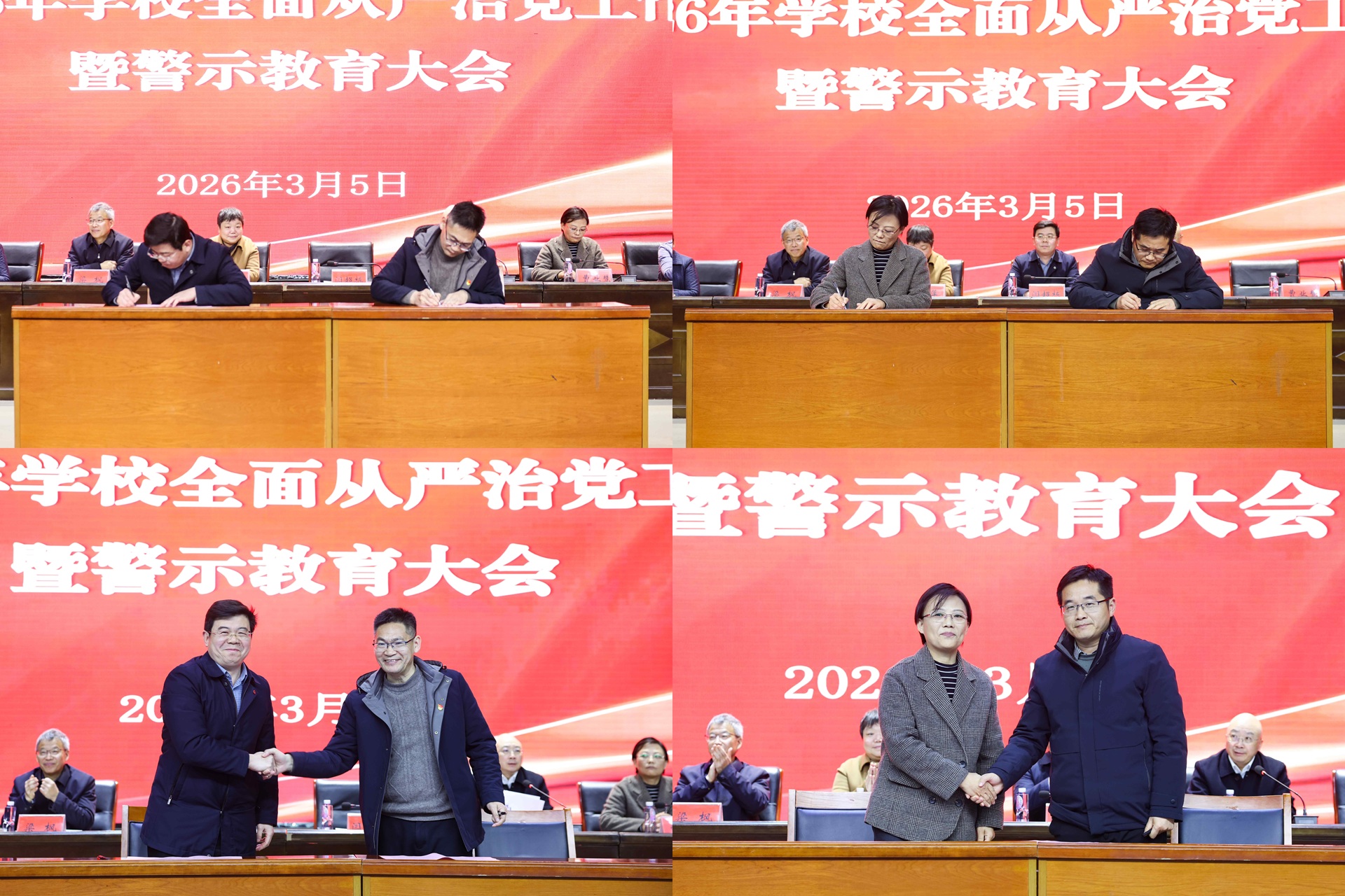 3月5日下午,学校2026年全面从严治党工作暨警示教育大会在图书馆多功能报告厅举行。全体校领导、党委委员、纪委委员、中层干部等参加大会,会议由党委副书记、校长张维主持。