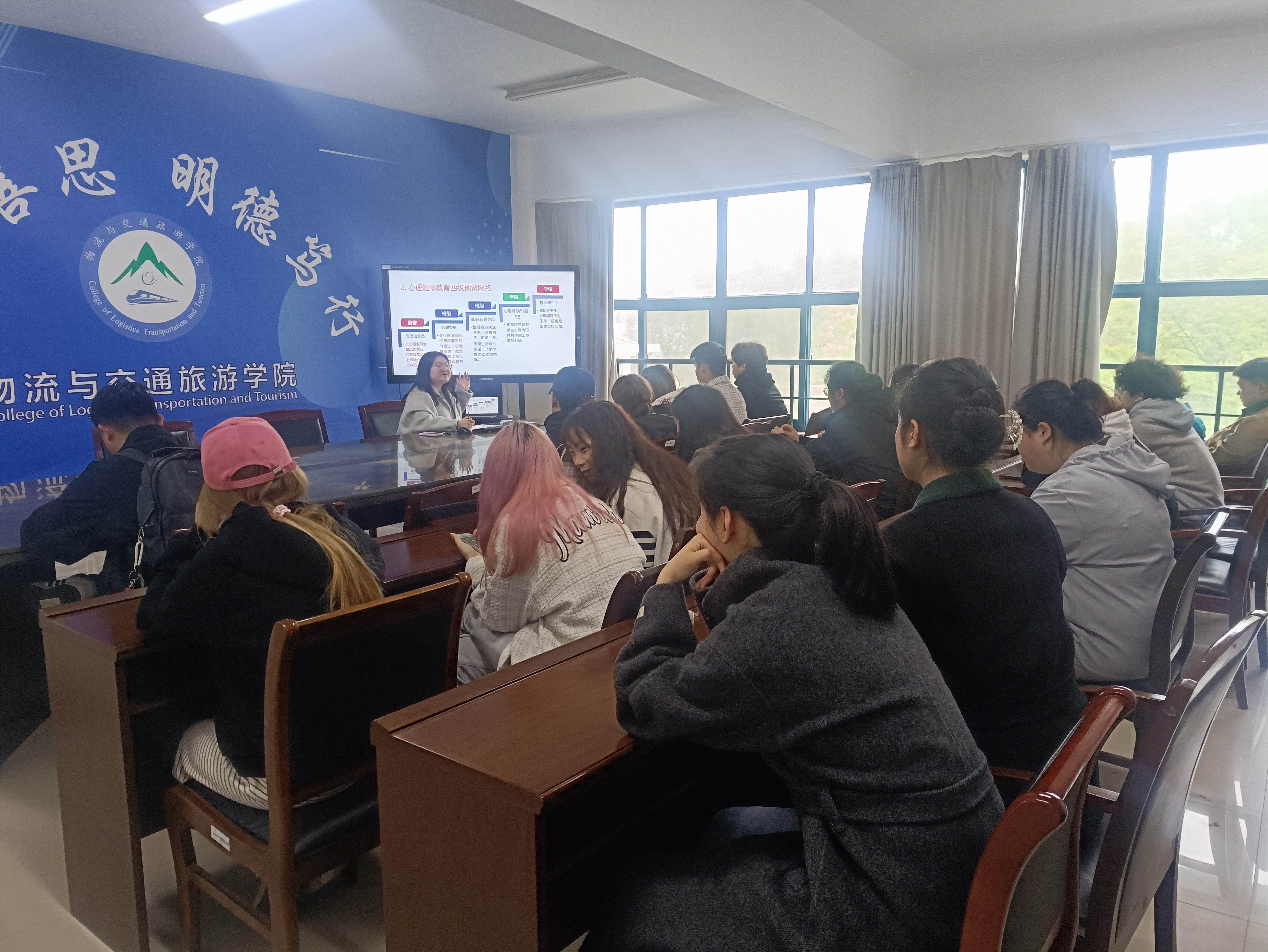 本次培训围绕四大核心模块展开,内容扎实、实用性强。培训伊始,学院心理辅导员杨梦茹老师首先明确了心理委员的七大核心职责,帮助同学们清晰定位自身角色,掌握“倾听者、观察者、支持者、桥梁者”的身份要求;随后,详细解读了学校心理健康教育四级预警网络的运行机制,明确了从班级到学校的危机转介流程,让同学们知晓“遇到问题该找谁、该怎么做”;接着,重点讲解了心理危机信号的识别要点,引导同学们学会从情绪、行为、言语等方面发现同学的异常表现,做到早发现、早报告、早干预;最后,聚焦“焕发朋辈力量”,分享了朋辈沟通的技巧与原则,鼓励同学们以真诚、共情的态度,为身边同学提供温暖的支持与陪伴。