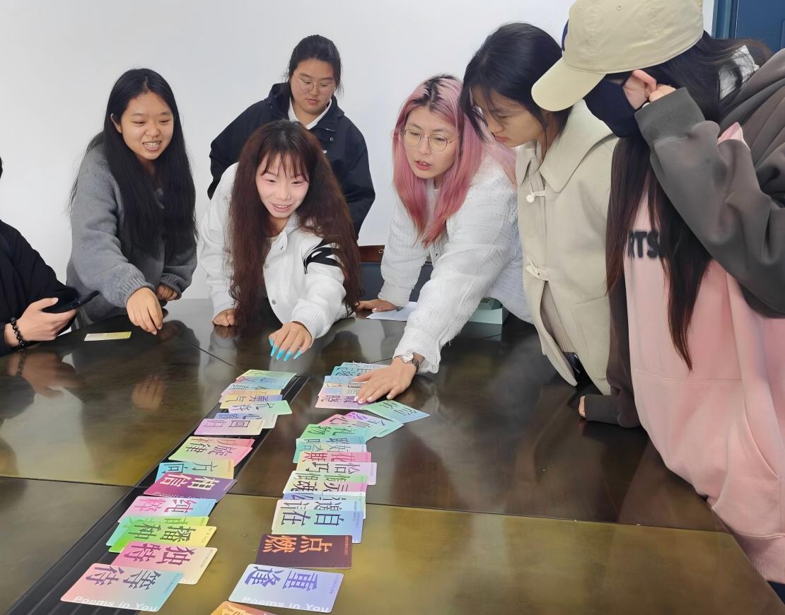 培训结束后,现场开展了创意十足的“诗歌请回答”互动环节。每位心理委员随机抽取一张印有灵感词的卡片,读出卡片背面的诗歌,再围绕卡片上的内向探索启发式问题分享感悟。从关于“微光”的短诗到关于“成长”的句子,同学们在温柔的诗句中舒缓情绪,在坦诚的分享中向内探索,既加深了对自我的理解,也拉近了彼此的距离,现场氛围温馨而治愈。