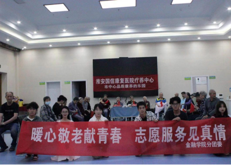 为深入学习贯彻党的二十大精神,以实际行动践行“奉献、友爱、互助、进步”的志愿精神,传递健康从心开始,关爱生命,呵护心灵的理念,给予老人关怀以及温暖,给他们带来一份欢乐和心灵上的慰藉。5月14日母亲节,金融学院分团委部分学生代表来到淮安国信康复医院疗养中心开展“暖心敬老献青春,志愿服务见真情”志愿服务活动。
